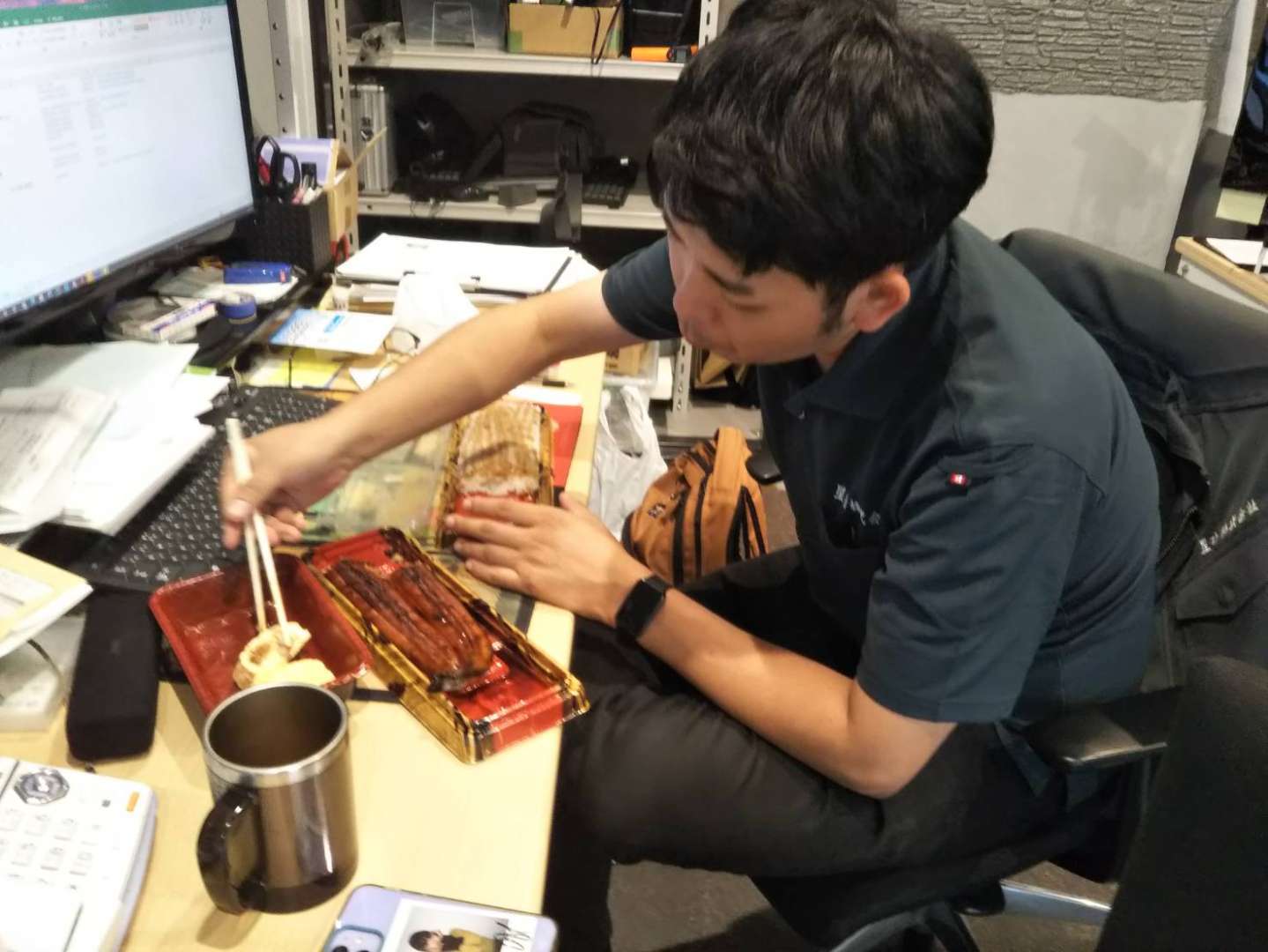 社長がせっかくやからと、お昼ごはんに鰻重を差し入れてくれました~(^^♪
