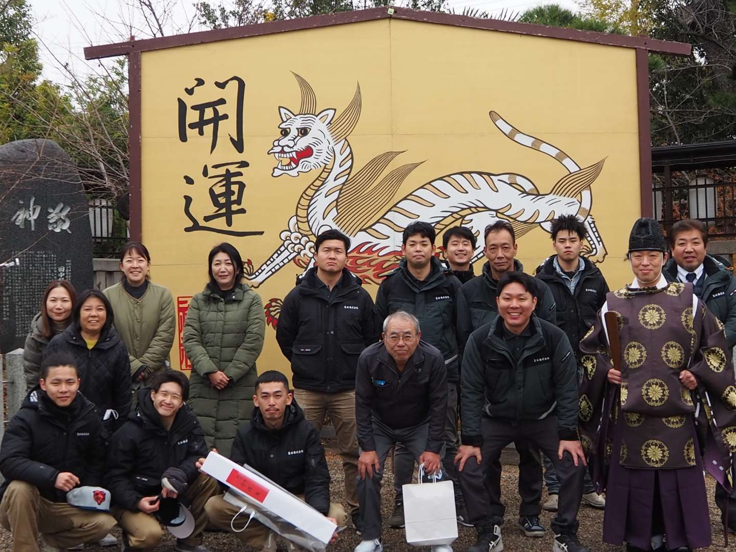 今年も自社スタッフみんなで氏神様の『阿倍野神社』へ初詣に行き、会社の繁栄や社員の健康安全を祈祷してもらいました